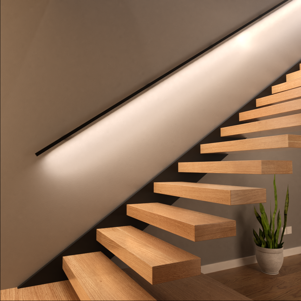 Eine indirekte Handlaufbeleuchtung kann Ambiente und mehr Sicherheit im Treppenbereich vereinen.